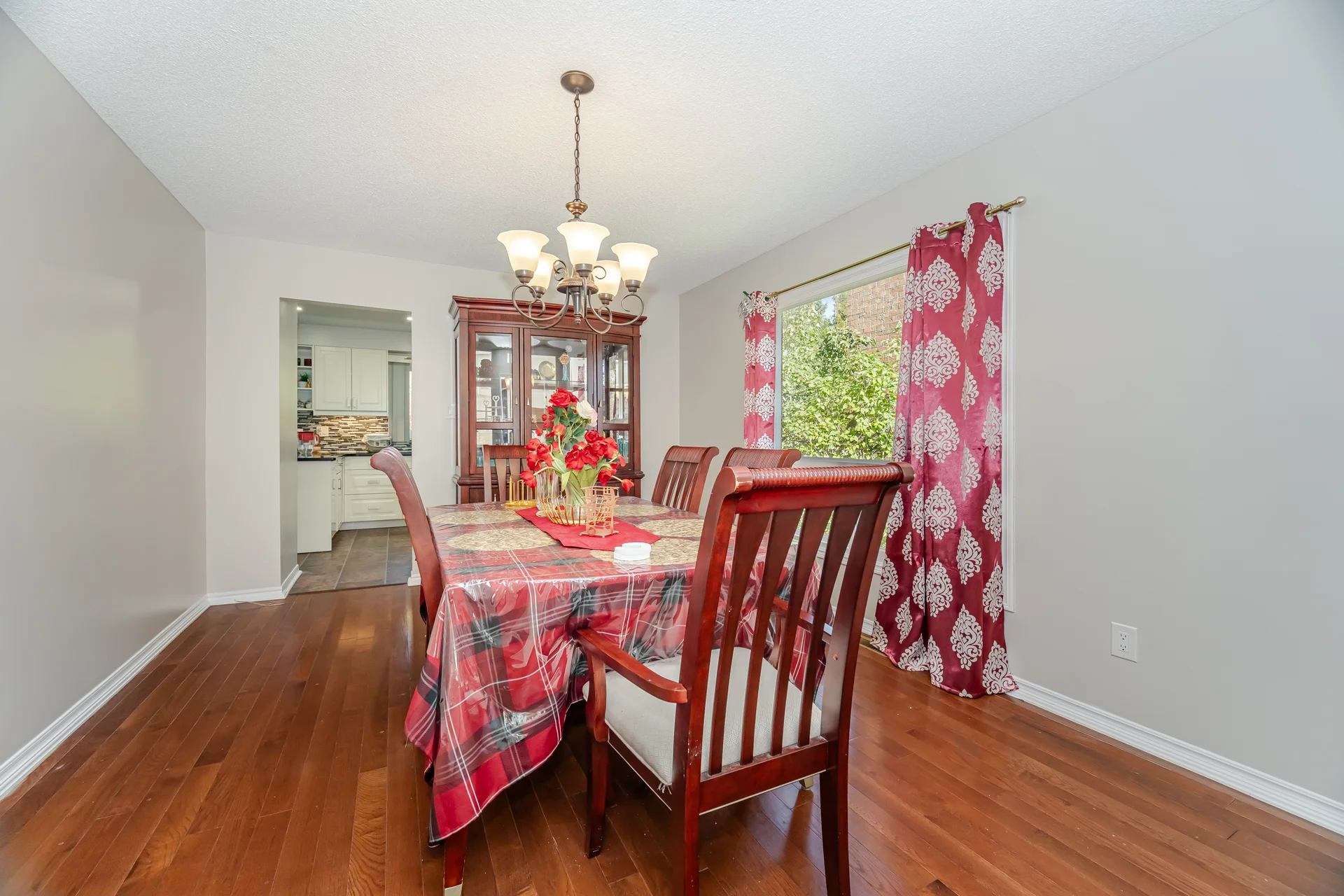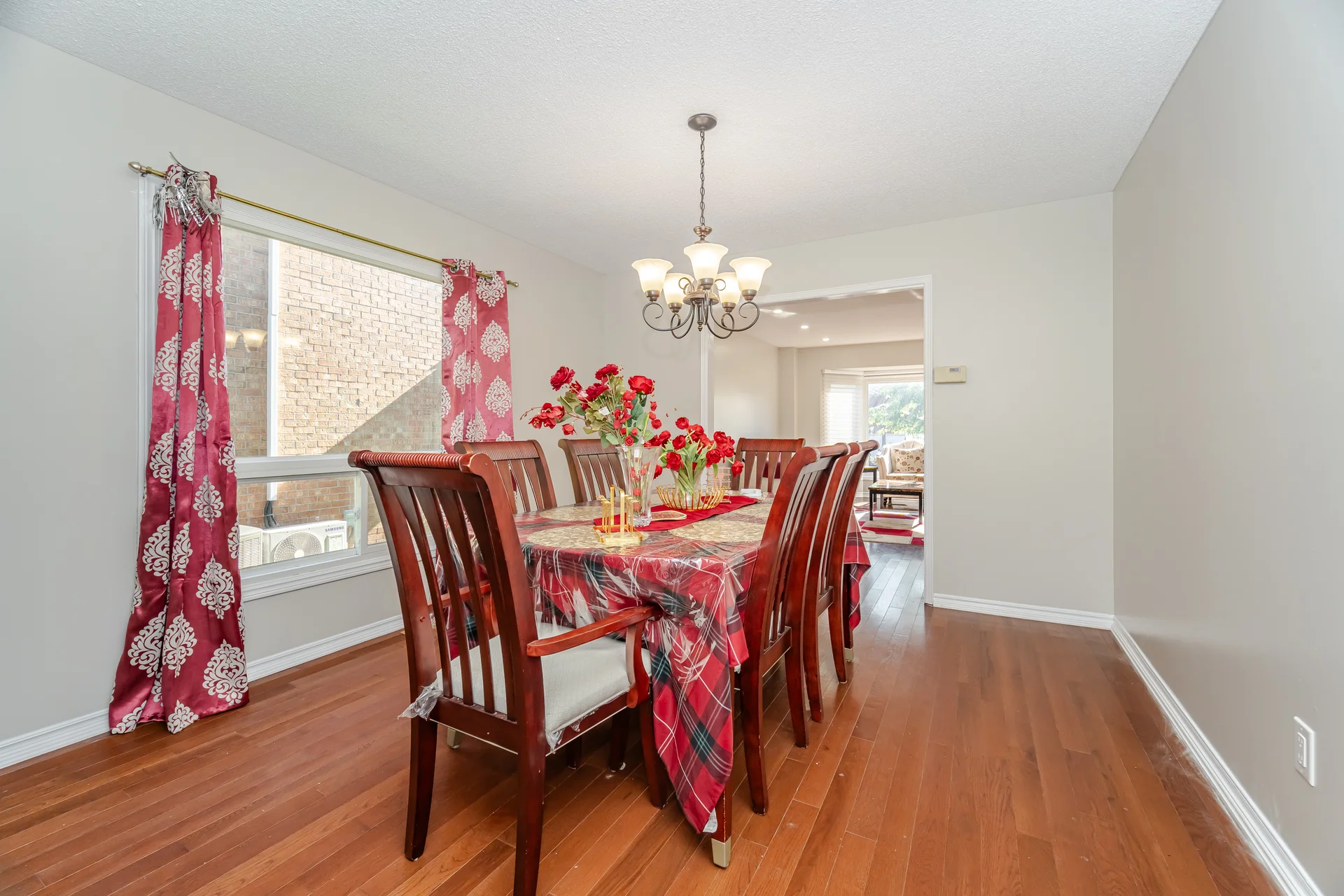 Hardwood floor, open flow, overlooks front yard |