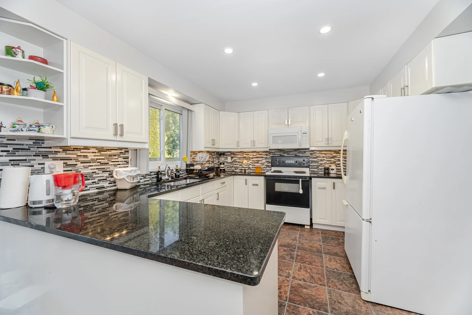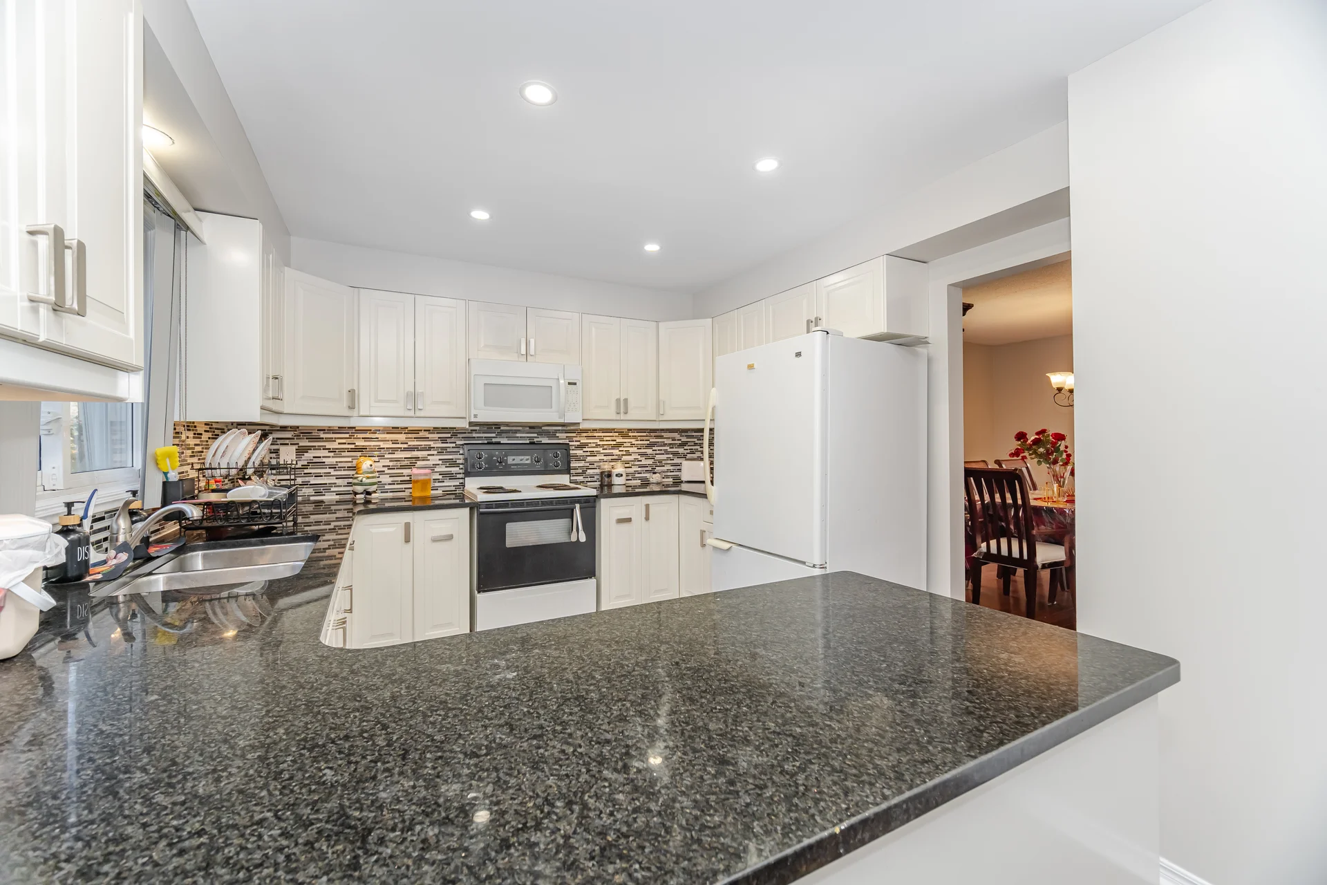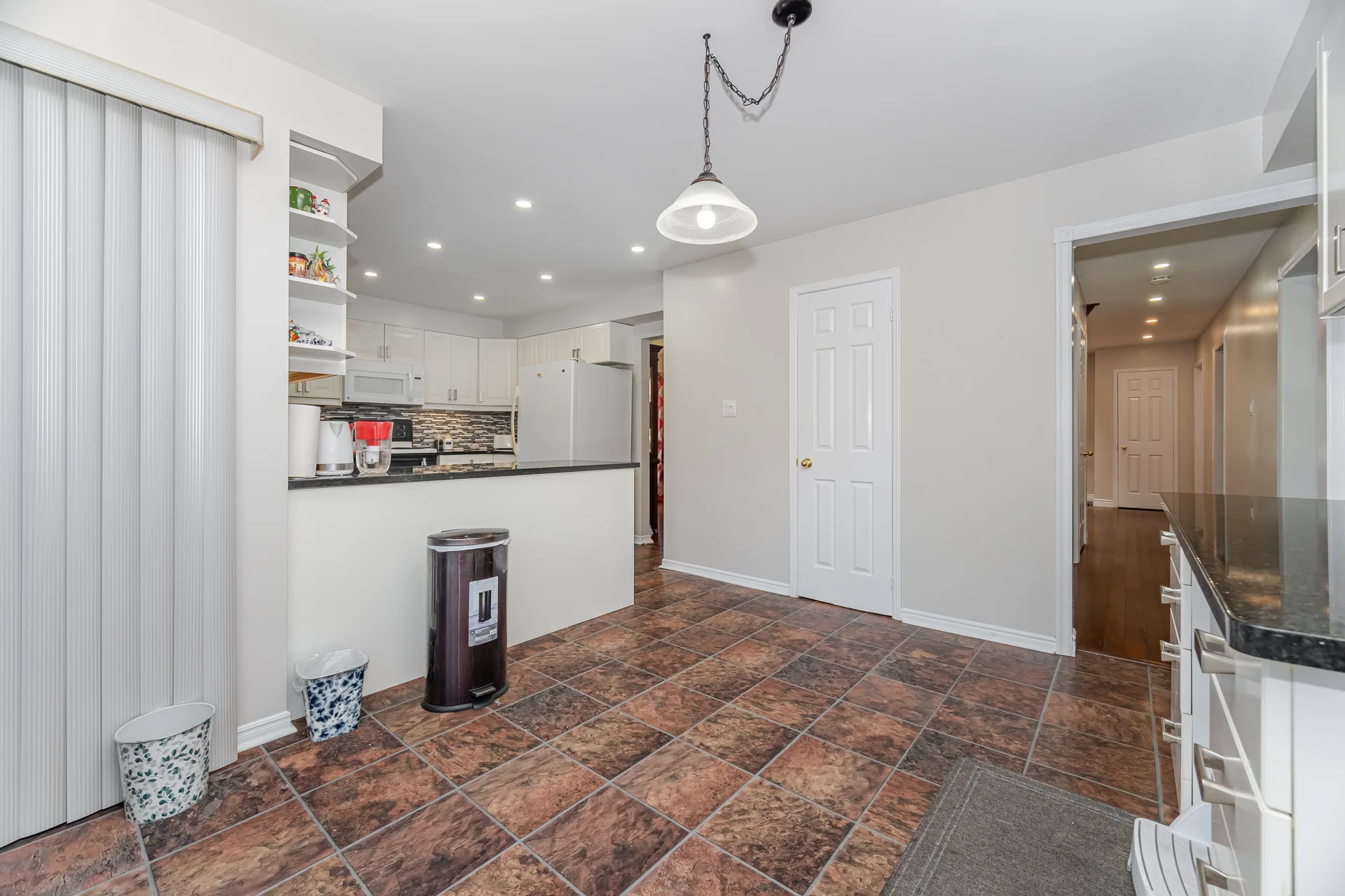 Granite counters, walk-in pantry, built-in desk |